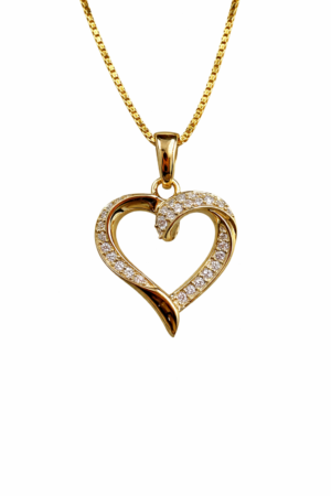 • Vedhæng hjerte 8 karat zirkonia med sølvforgyldt kæde