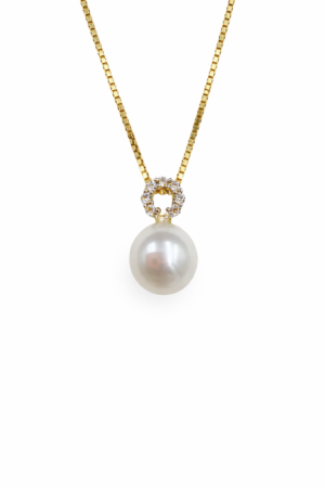 • Vedhæng 8 karat ferskvandsperle cirkel zirkonia med sølv forgyld kæde