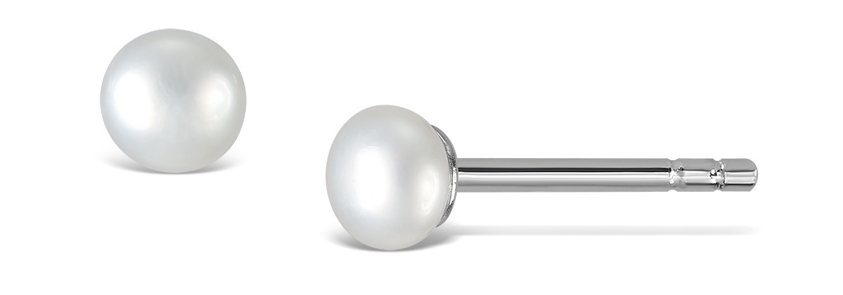 Ørestik sølv hvid perle. 4-5mm